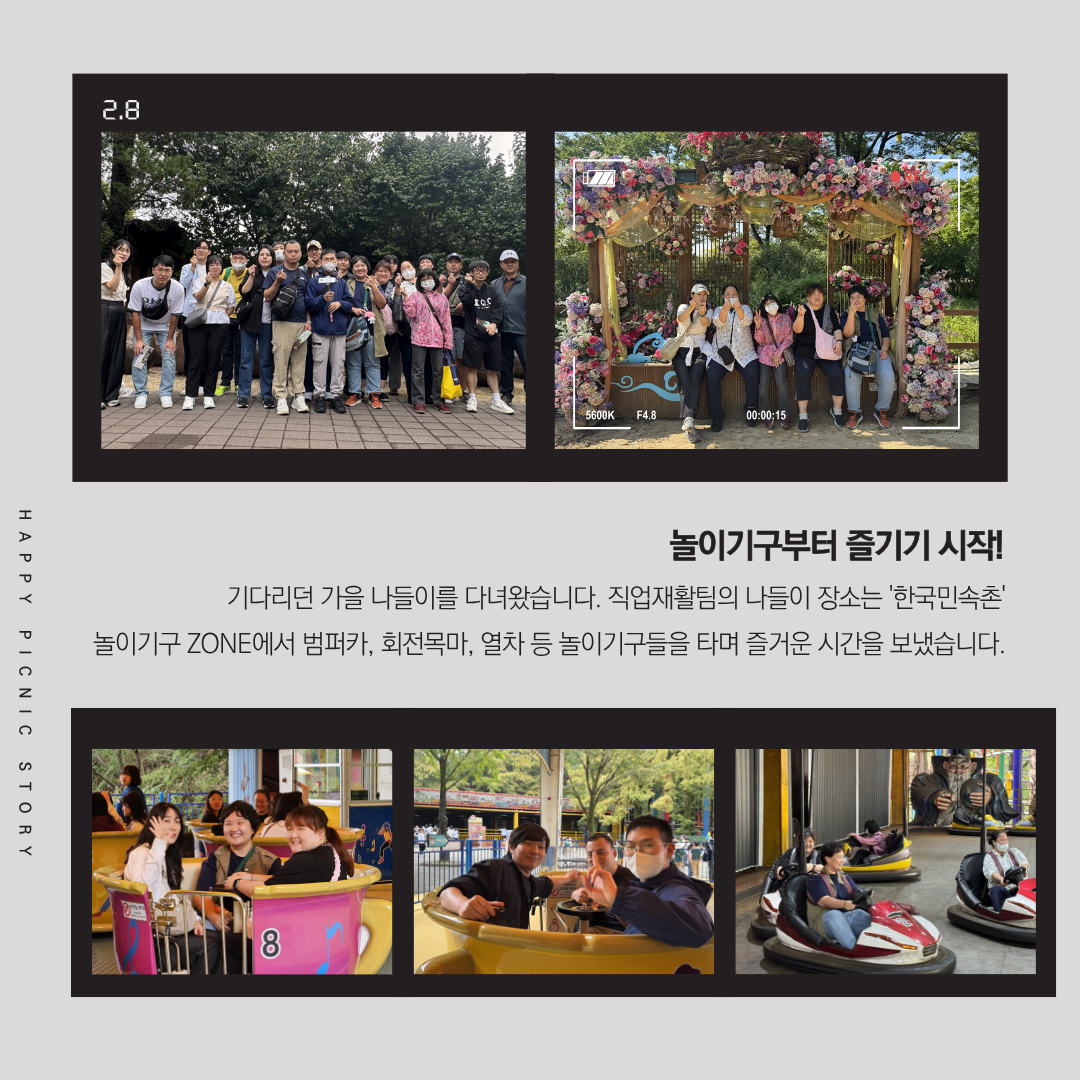 놀이기구 ZONE에서 범퍼카, 회전목마, 열차 등 놀이기구들을 타며 즐거운 시간을 보냈습니다.