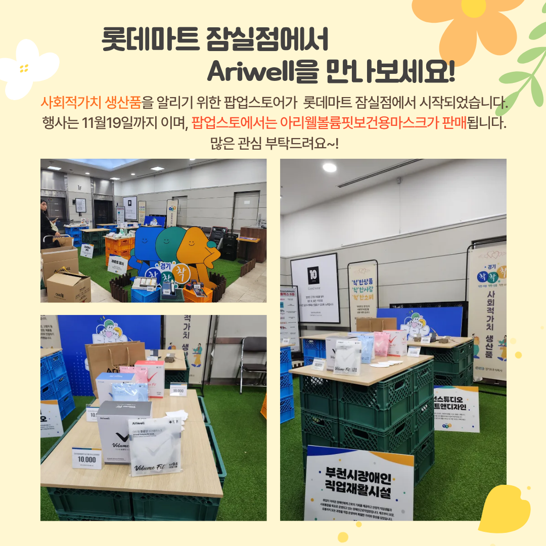 팝업스토어에서는 아리웰볼륨핏보건용마스크가 판매됩니다.