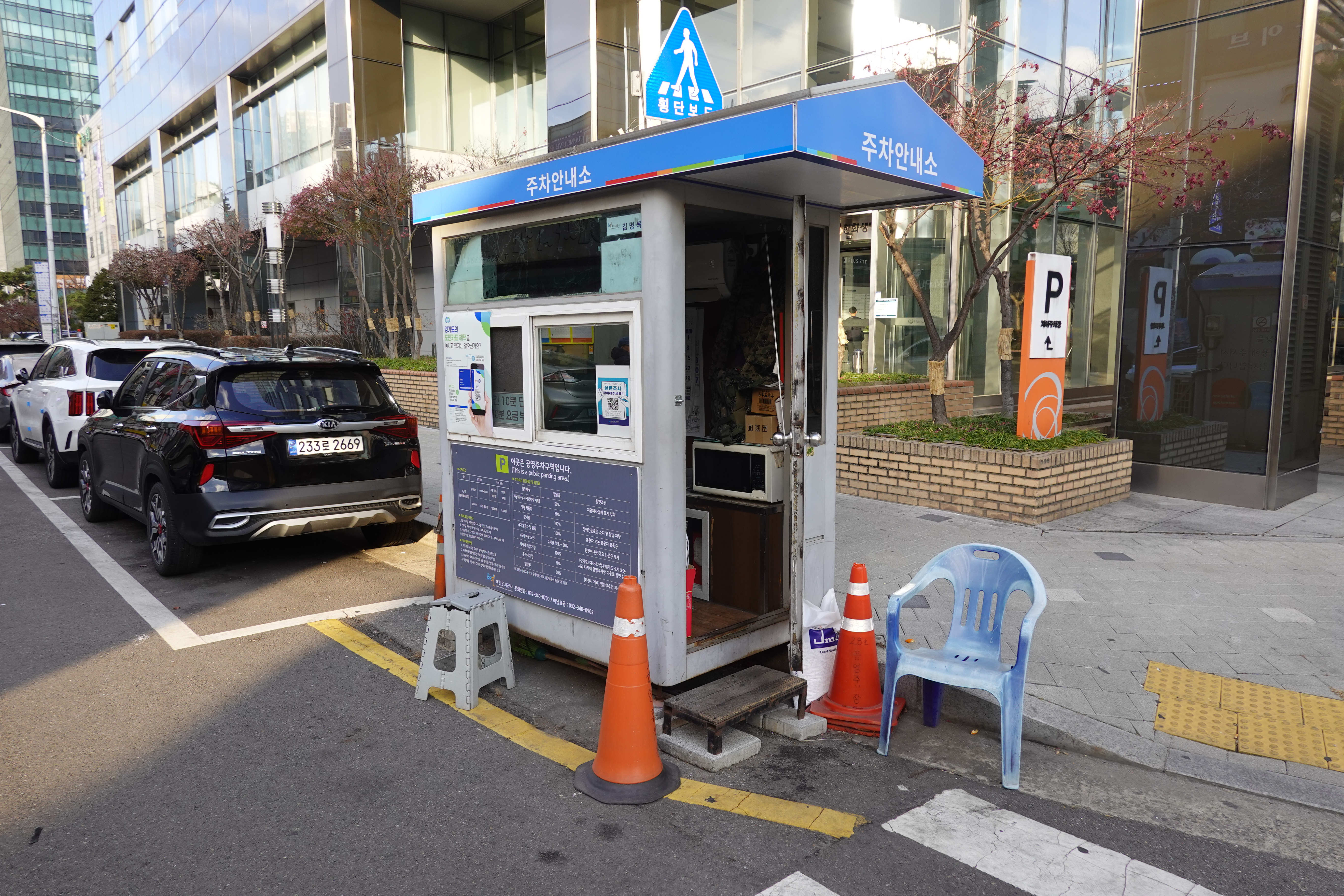 공사주차(문화인)-중동먹자골목 27번부스 안내판 1개, 근처 안내판 1개
